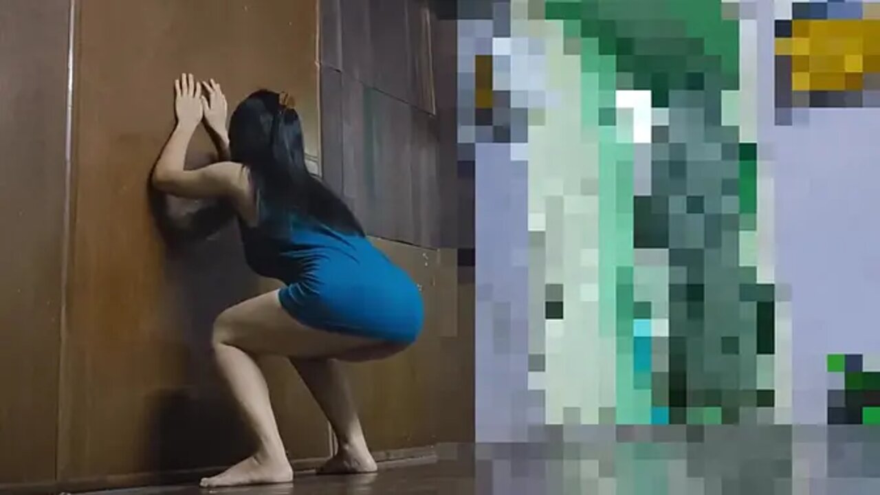 naughty young Asian college girl with a curvy body and big round booty shows off her sexy moves during a home workout. She flexes and jiggles her ass while sweating, making it clear she's no ordinary student.