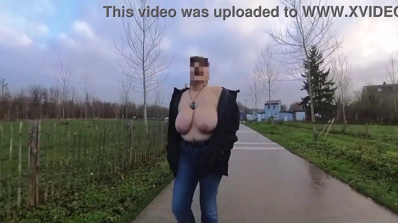 The mature housewife, proud of her curvy figure and giant natural melons, can't resist showing off her saggy boobs to passersby. She walks with confidence down the busy sidewalk, drawing attention from everyone around her. As she continues to play with them and giggle, some people can't help but stare at her seductive display.